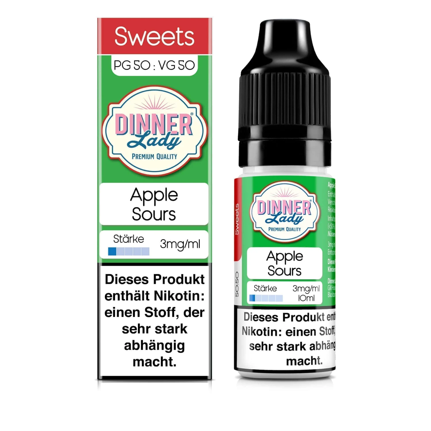 Dinner Lady Apple Sours Liquid in der praktischen 10ml Flasche mit wahlweise 3mg, 6mg oder 12mg/ml Nikotin